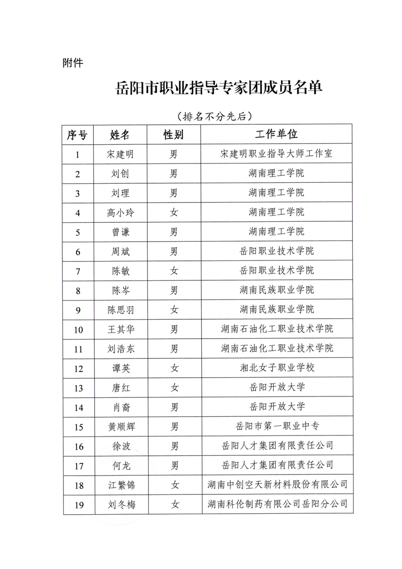 市人社局关于聘任岳阳市职业指导专家团成员的通知