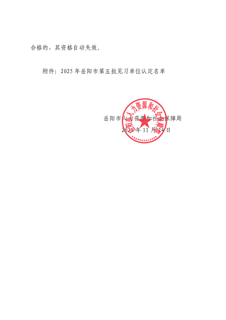 关于认定岳阳市岳阳中学等4家单位为2025年第五批岳阳市就业见习单位的通知